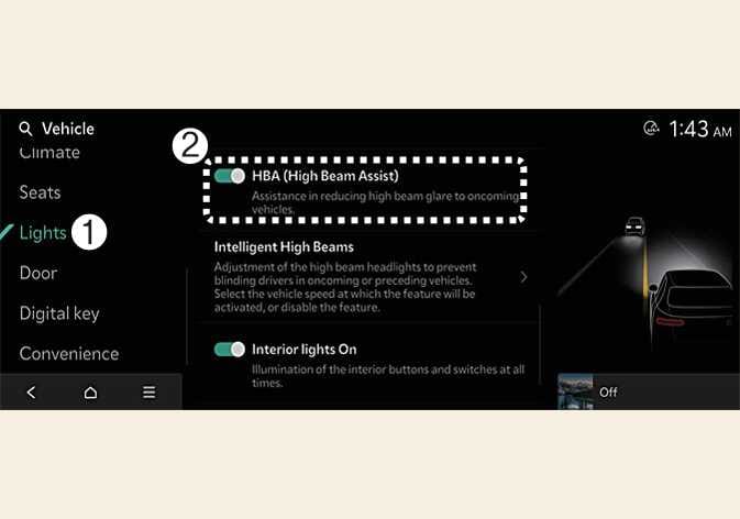 For your safety, adjust your high beam settings only after parking the vehicle at a safe location.