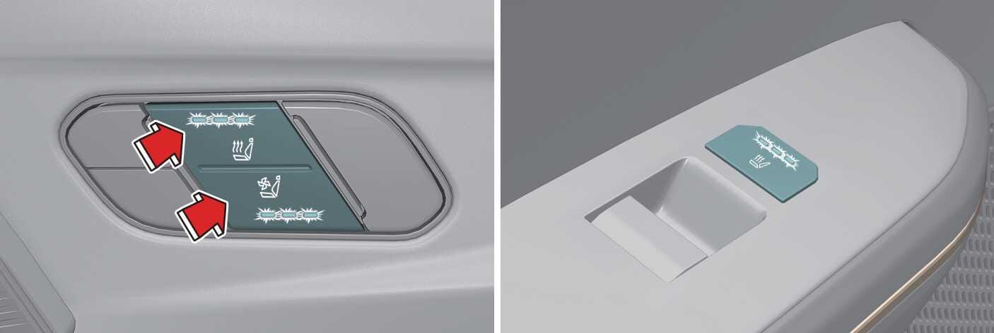 With the seat warmer buttons in the ON position, the heating system in the seat turns off or on automatically depending on the seat temperature.