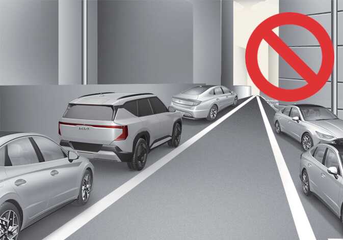 If Remote Smart Parking Assist is used, when parking in a parking space with a vehicle only on one side, your vehicle may cross the parking line to avoid the parked vehicle. |