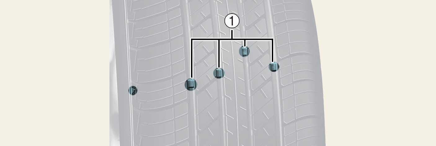 This shows there is less than 1.6 mm (1/16 in.) of tread left on the tyre. Replace the tyre when this happens.