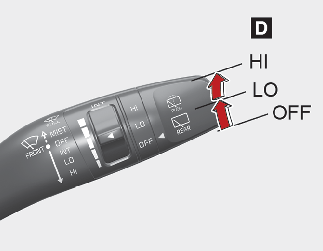 C: 와셔액 분출 및 와이퍼 일시 작동(사양 적용 시)
