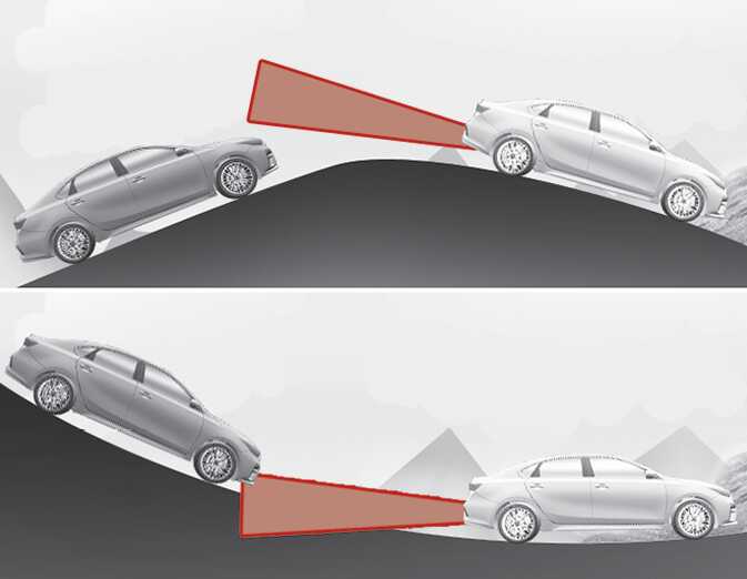 오르막길이나 내리막길에서는 주변 차로의 도로 상황 및 주행 상태를 직접 확인하십시오.