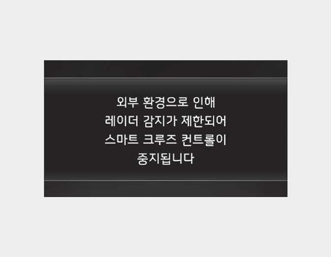 인식 센서 경고문이 표시되지 않거나 경고등이 켜지지 않더라도 스마트 크루즈 컨트롤이 정상 작동되지 않을 수 있습니다.