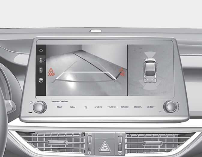 사이드 미러 (실외 미러) 경고등이 깜빡이고 계기판 등에 경고문이 표시됩니다. 동시에 경고음이 울리며, 후방 교차 충돌 경고를 운전자에게 알립니다.