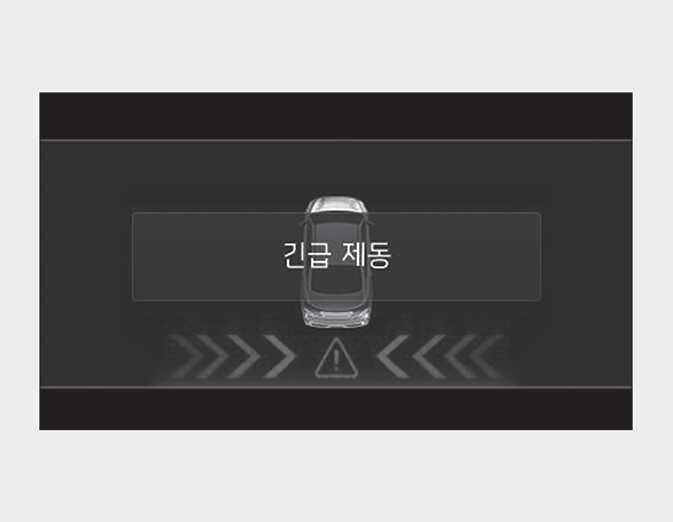 사이드 미러 (실외 미러) 경고등이 깜빡이고 계기판 등에 경고문이 표시됩니다. 동시에 경고음이 울리며 긴급 제동을 운전자에게 알립니다.