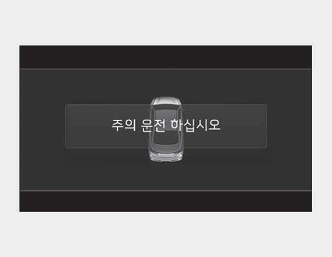후방 교차 안전 시스템이 작동 시 탑승자 및 차량 내 물건이 움직여 다칠 수 있으므로 항상 주의를 기울이시고 반드시 전 좌석 안전 벨트를 착용하십시오.