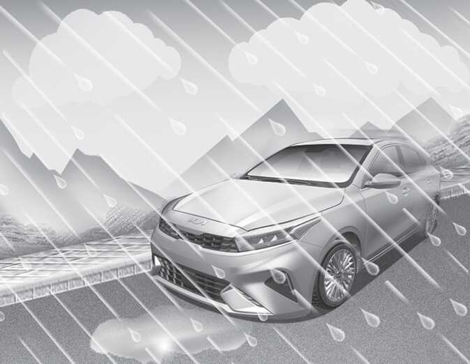 장마철이나 비가 많이 내리는 지역 등을 통과할 때는 특별히 주의하십시오. 타이어 중앙부분(타이어 휠 허브)이 잠길 정도로 수위가 높으면 운행하지 마십시오. 물을 통과할 경우는 천천히 서행하고 물속에서는 제동성능이 제대로 발휘되지 않을 수 있으므로 적당한 제동거리를 유지하십시오. 물을 통과한 뒤에는 차를 서행하면서 브레이크를 부드럽게 몇 번 밟아 브레이크를 건조시키십시오.