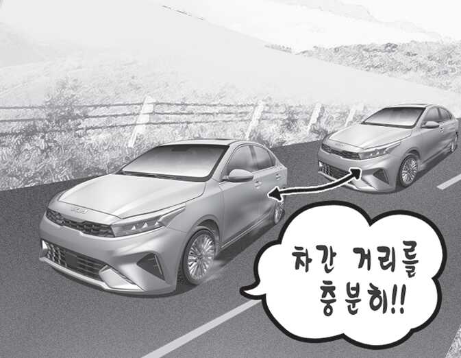 차간 거리를 충분히 확보하고 스티어링 휠을 천천히 조작하십시오.