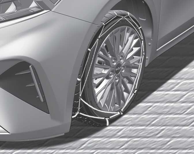 체인 규격이 맞지 않거나 규격대로 장착하지 아니한 경우에는 차량이 훼손될 수 있으며 이로 인해, 조향성 및 안전성에 문제를 야기시킬 수 있으므로 규격에 맞는 체인을 장착하십시오.