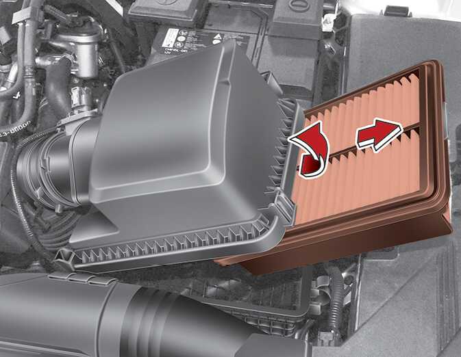 에어클리너 필터 분리 시 에어플로우 센서에 충격을 가하거나 공기 흡입구에 먼지나 오염 물질이 들어가지 않도록 주의하십시오.