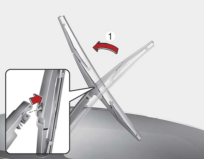 와이퍼 암(1)을 세운 다음 와이퍼 블레이드를 당겨 분리하십시오.