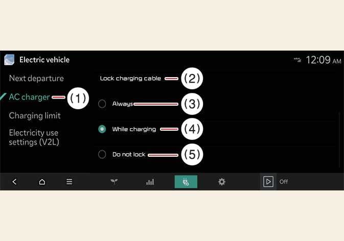 Sie können auswählen, wann der Ladestecker in der Aufladebuchse gesperrt und entsperrt werden kann.