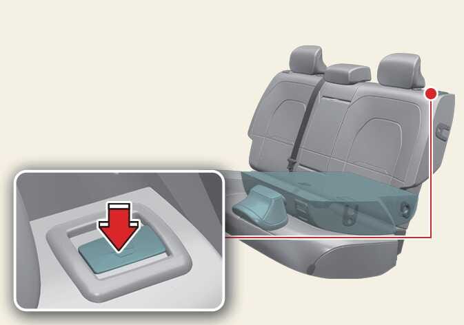 Drücken Sie die Taste für die Kopfstütze des Rücksitzes, um die Kopfstütze des Rücksitzes in ihre niedrigste Position zu bringen.