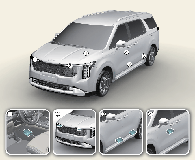 Problems may arise if the sensor installation angles are changed due to the deformation of the front bumper, front end module, body or front doors where side collision sensors are installed. Have the vehicle checked and repaired by an authorized Kia dealer.