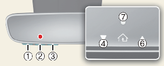 If the indicator (4) or (6) does not turn Green, it indicates that the last status of garage door was not received properly. The HomeLink mirror tries to receive the last known status of the garage door for a few seconds.