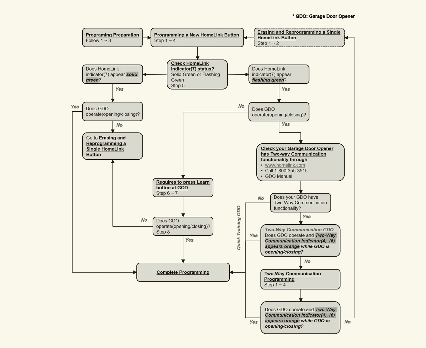 HomeLink 5 Programming Flow Chart