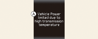 If the transmission continues to overheat and reaches its maximum temperature, the above warning message appears. The vehicle limits transmission power by its self-protection mode.