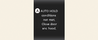 A: AUTO HOLD conditions not met. Close door and hood.