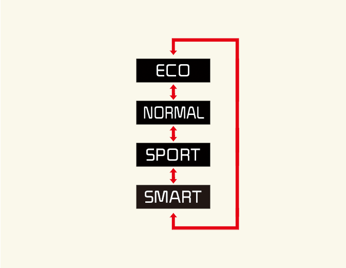 SMART mode automatically controls the vehicle driving, such as gear shifting patterns and engine torque, in accordance with your driving habits.