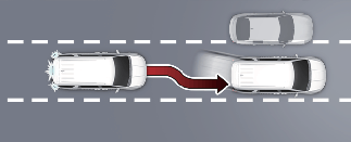 When your vehicle speed is above 40 mph (60 km/h), if a vehicle around you is driving at a close distance, your vehicle will control steering in the opposite direction of the vehicle to assist in safe driving. If there are vehicles in both sides of the lane that are driving close to you, the function will not veer to the opposite side of the lane.