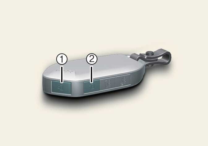 시동이 꺼진 상태에서 도어 잠금 버튼(1) 및 도어 잠금 해제 버튼(2)을 약 3초 이상 길게 누를 경우