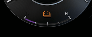 The low percentage number on the indicator indicates that there is a limited amount of driving range in the high voltage battery. 100% indicates that the driving battery is fully charged.