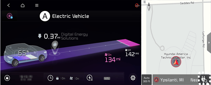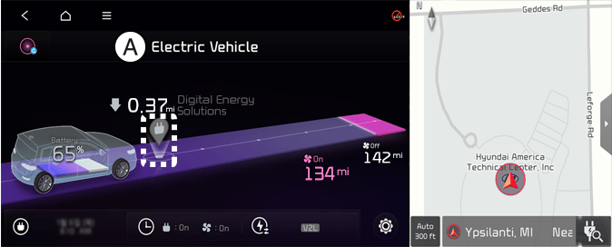 Select EV and see the map from the infotainment system screen. Stations around the current location are searched.