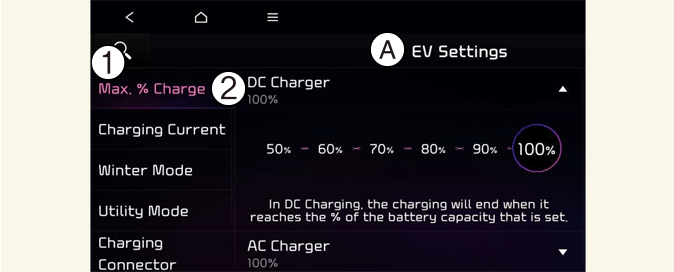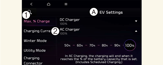 The target battery charge level can be selected when charged with AC charger or DC charger.