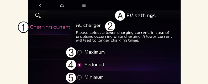 You can adjust the charging current for an AC charger. Select an appropriate charging current.