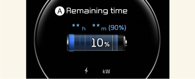 If you open the driver’s seat door while charging, the estimated charging time is also displayed on the instrument cluster for about 1 minute. When scheduled charging or scheduled air conditioner/heater is set, the estimated charging time is displayed as "--".