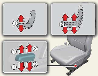 Pull the front portion (1) of the control switch up to raise or press down to lower the front part of the seat cushion.
