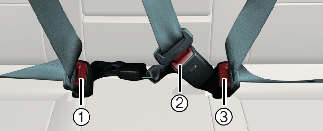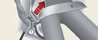 The seat belt is released by pressing the release button (1) on the locking buckle.