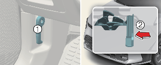 Pull the release lever (1) to unlatch the hood. The hood should pop open slightly. Go to the front of the vehicle, raise the