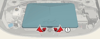 Lift up the front trunk cover while depressing the front trunk lever (1).