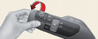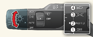 To operate the lights, turn the knob at the end of the control lever to one of the following positions:
