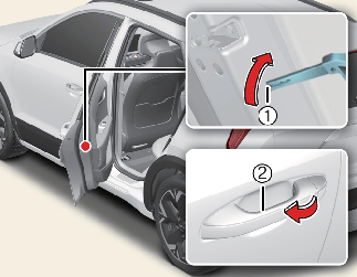 To open the rear door, pull the outside door handle (2).