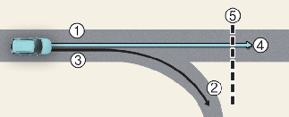 [1]: Main road, [2]: Branch line, [3]: Driving route, [4]: Set route, [5]: Curved road section