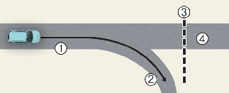 [1]: Driving route, [2]: Branch line, [3]: Curved road section, [4]: Main road