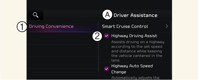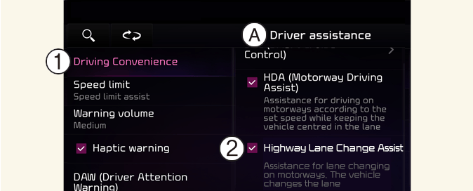 Highway Driving Assist should be selected to use Highway Lane Change Assist. (if equipped)