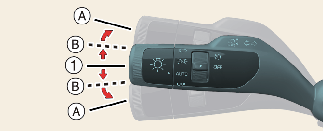 When the turn signal lever is placed at (A) position, the Highway Lane Change Assist function is performed. After that, if the turn signal lever is placed at (1), Highway Lane Change Assist function is not canceled.