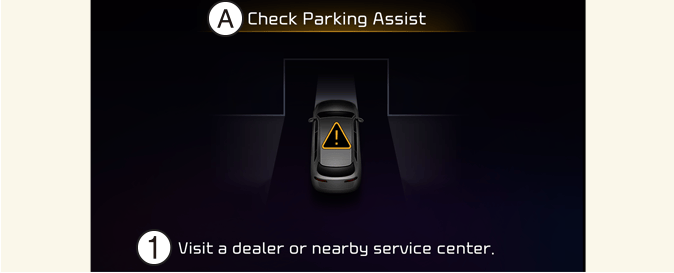 When Remote Smart Parking Assist is not working properly, the warning message will appear on the infotainment system screen. If the message appears, stop using Remote Smart Parking Assist, and have the vehicle inspected by an authorized Kia dealer.