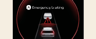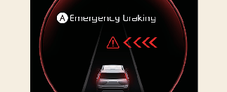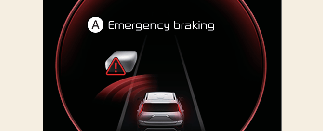 Emergency braking will alert the driver with the warning message, an audible warning and steering wheel vibration. The brake assist will be activated and it helps avoiding collision of a vehicle, pedestrian and cyclist.
