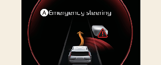 To warn the driver that emergencysteering will be assisted, the warningmessage will appear on the cluster, and an audible warning will sound and the steering wheel will vibrate.