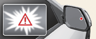 The warning light on the outside rear view mirror, head-up display (if equipped), an audible warning and steering wheel vibration will warn the driver of a collision. It assists in braking control to prevent a collision with a vehicle approaching from the blind spot area.