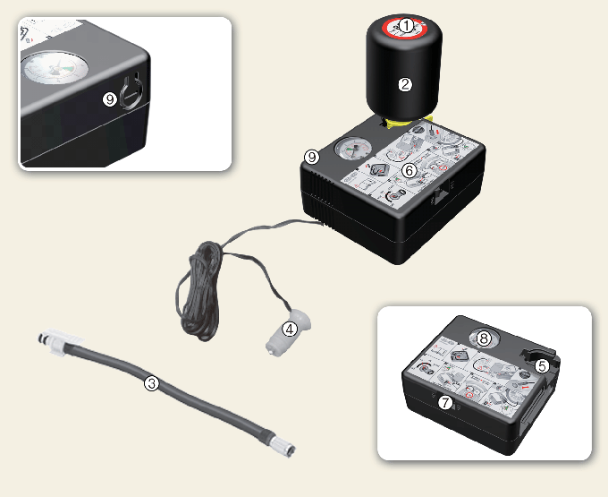 Before using the tire repair kit, please read carefully the instruction attached on the sealant bottle. Detach the speed limit label on the sealant case and put it on a highly visible place. Always drive within the speed limit.