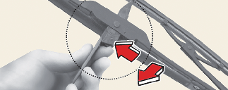 Turn the wiper blade assembly to expose the plastic locking clip.