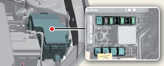 After checking the fuse panel in the motor compartment, securely install the fuse panel cover through the audible clicking sound. If not, electrical failures may occur from water contact.