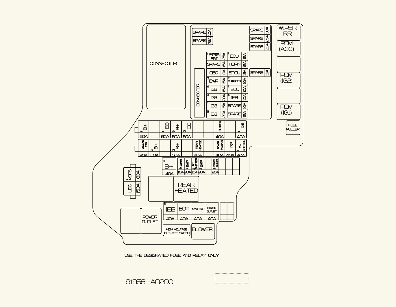 ICU Junction Block (FUSE - E-SHIFTER3, P/WDW LH, P/WDW RH, T/GATE OPEN, AMP, P/SEAT DRV, P/SEAT PASS, S/HEATER FRT, S/HEATER RR, CHILD LOCK) |