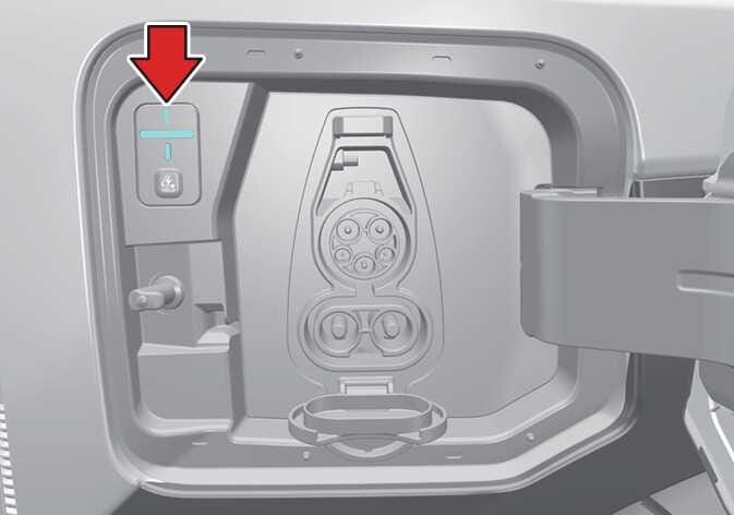 예약 충전이 설정되어 있고, 완속 충전기 또는 휴대용 충전기(ICCB: In Cable Control Box)를 연결하여 충전을 할 경우 충전 도어의 충전 상태 표시등이 주황색으로 켜집니다.