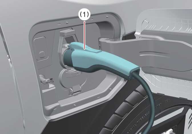 충전 커넥터를 분리할 때 차량 도어 잠금 해제 후 분리하십시오. 차량 도어가 잠긴 상태에서는 충전 커넥터의 잠금 해제 버튼(1)이 작동하지 않습니다.